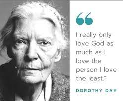 It is a dagger of a quote from that old prophet and Catholic Worker, Dorothy Day. “I really only love God as much as the person I love the least.”